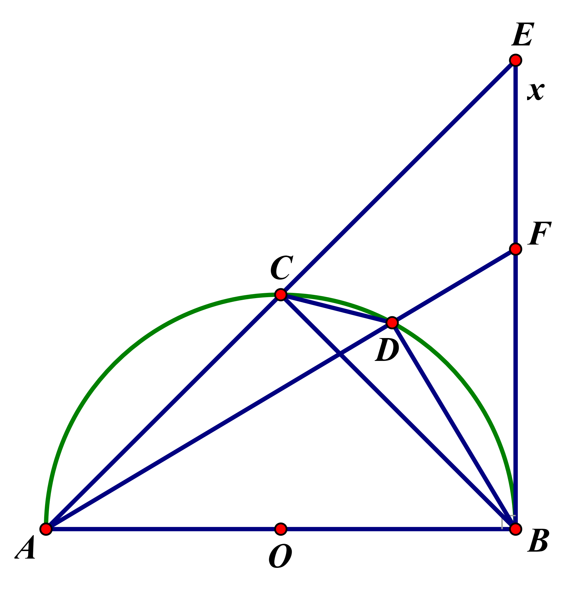 Xét tam giác ABE vuông tại B (Bx là tiếp tuyến của (O)) có góc EAB= 45°
