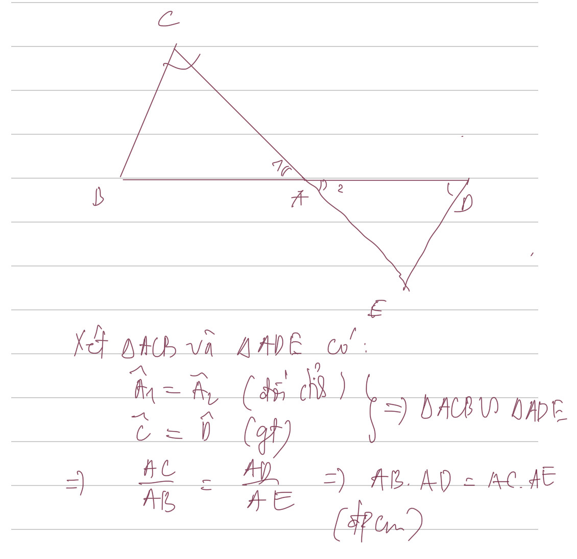 cho tam giác ABC trên tia đối của tia AB lấy điểm D, trên tia đối của tia AC lấy điểm E.sao cho ADE = ACB
