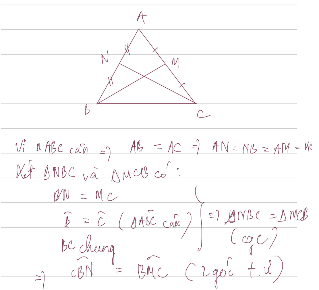 cho tam giác ABC cân tại A có hai đường trung tuyến BM và CN