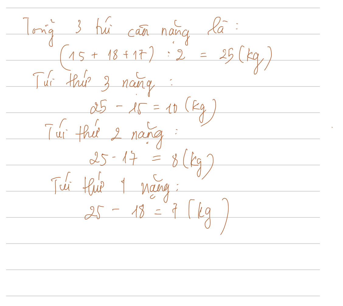 3 túi gạo cân nặng số ki - lô - gam là :