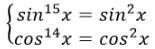 Từ đó suy ra sinx=1, cosx=0 hoặc sinx=0, cosx=±1