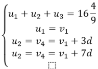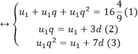 Gọi u1,u2,u3,u4 là 4 số hạng đầu tiên của cấp số nhân, với công bội q. gọi (vn) là cấp số cộng tương ứng với công sai là d. Theo giả thuyết Ta có: