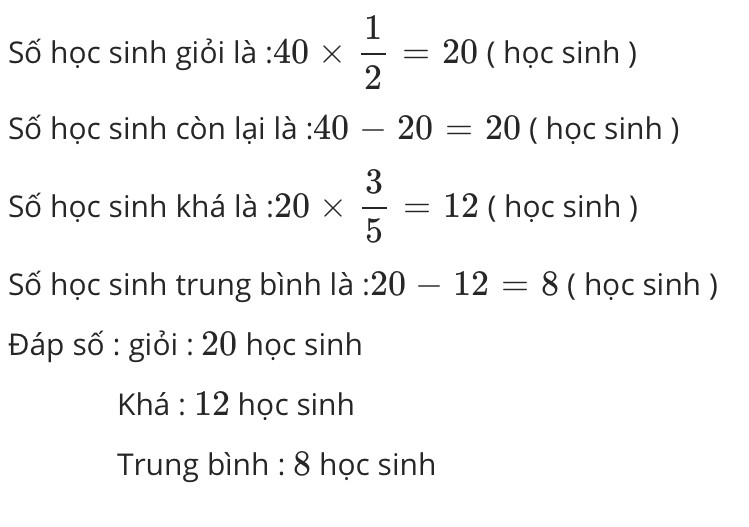 3 học sinh cả lớp. Số học sinh khá bằng số học sinh còn lại.