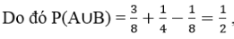 Mà P(A∪B) = P(A) + P(B) –P(A∩B), A∩B là biến cố:”học sinh được chọn giỏi cả Văn và Toán” nên n(A∩B)=5/40=1/8