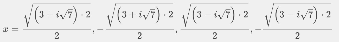 Để giải phương trình $-x^4+3x^2-4=0,$ ta có thể áp dụng phương pháp khai căn bậc 2. Đặt $y=x^2,$ ta có: