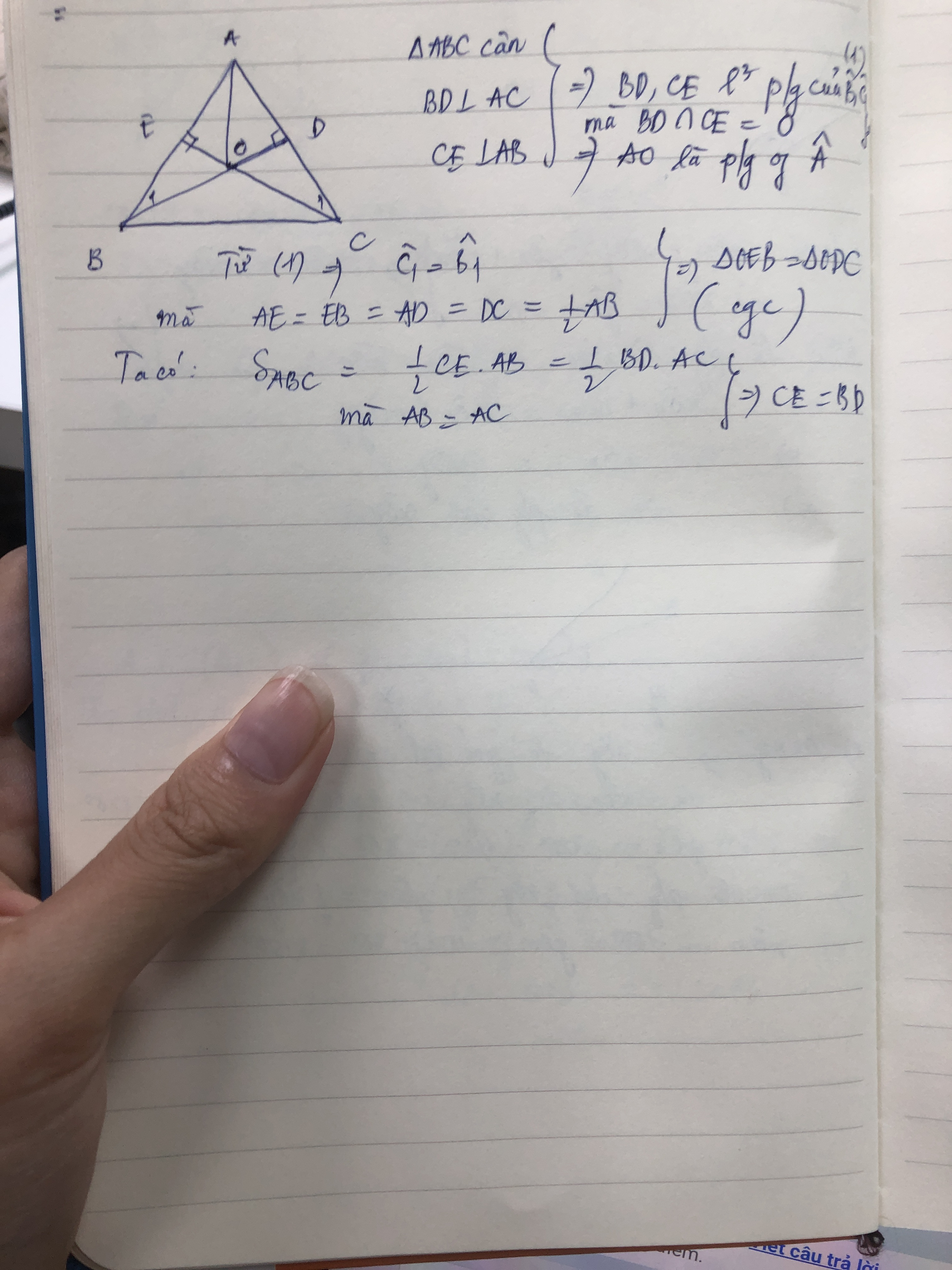 mà trong ∆ cân thì đường cao đi qua đỉnh đồng thời là đường phân giác của ∆ đó