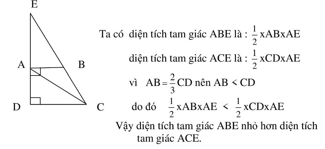 Vậy diện tích tam giác $ABE$ lớn hơn diện tích tam giác $ACE$.