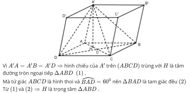 Cho hình hộp đứng ABCD.A'B'C'D' có đáy là hình thoi, góc BAD=60° đồng thời AA'=a. Gọi G là trọng tâm tam giác BCD. Biết rằng khoảng cách từ G đến mặt phẳng (A'BD) bằng (a√21)/21. Tính thể tích khối hộp ABCD.A'B'C'D' theo a