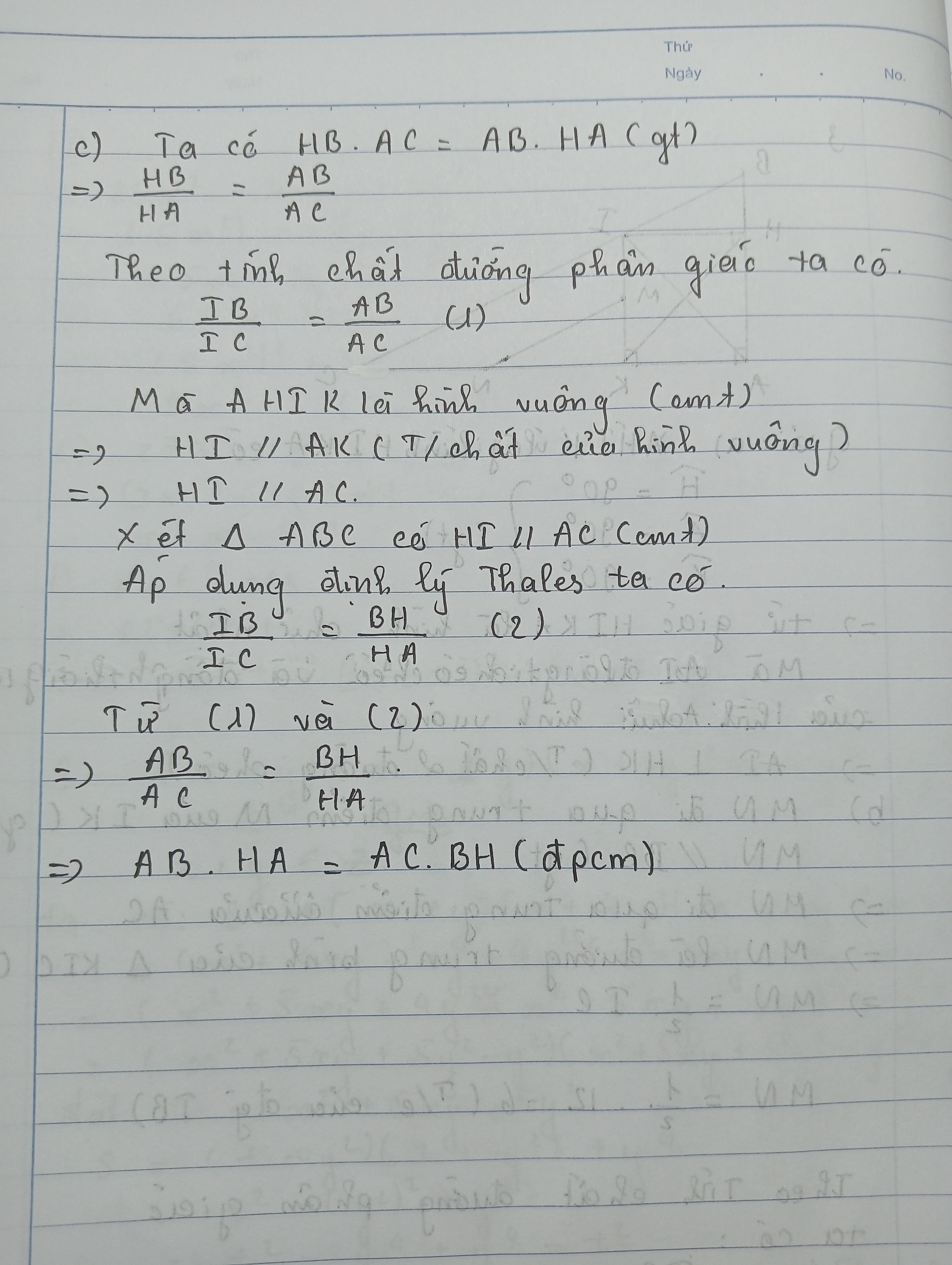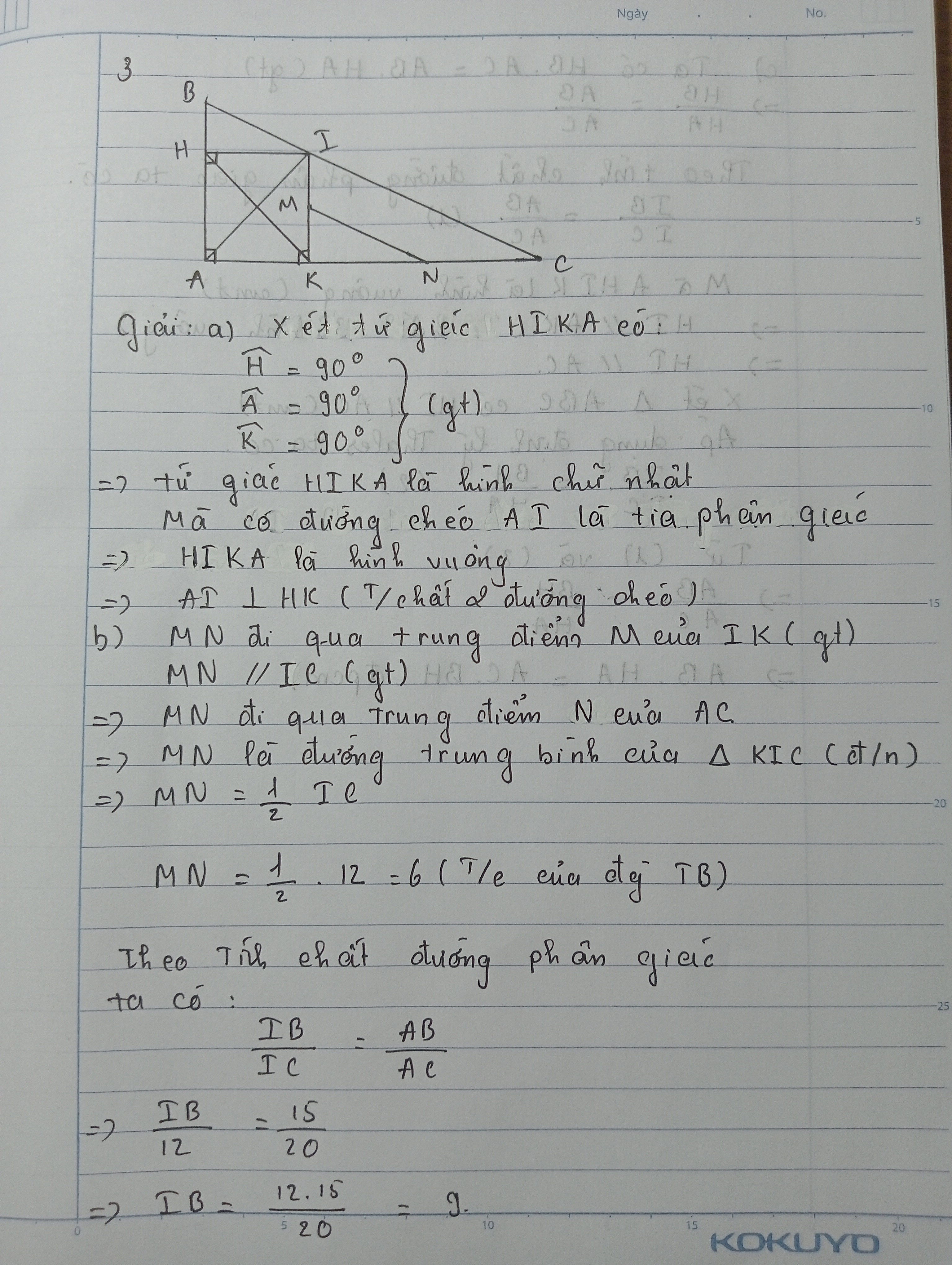 b. Gọi M là trung điểm của KI, vẽ MN song song với BC cắt AC tại N.