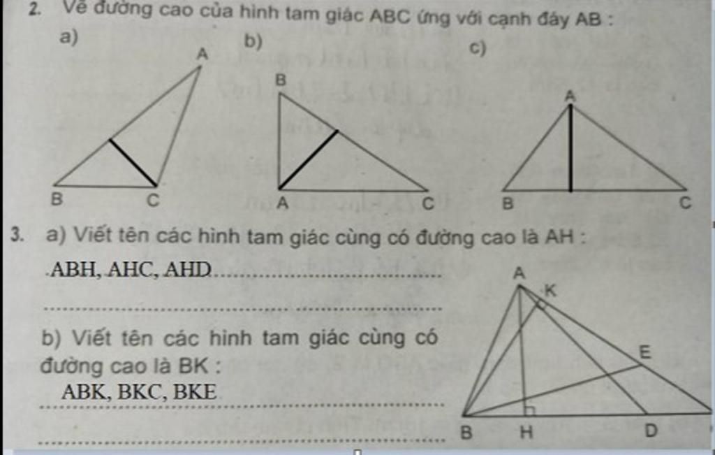 2,Vẽ đường cao của hình tam giác ABC ứng với cạnh đáy AB.