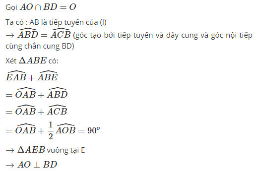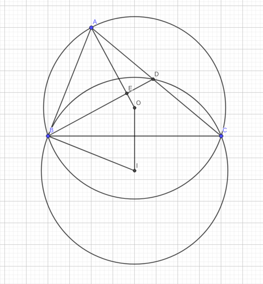 Cho tam giác ABC nội tiếp đường trìn (0) và (AB<BC). ĐƯỜNG TRÒN (I) đi qua B và C, tiếp xúc với AB tại B cắt đường thẳng AC tại D. Chứng minh rằng:OA vuông góc với BD