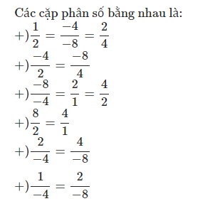 Lập các cặp phân số bằng nhau từ các số sau : 1,2,-4,-8,4