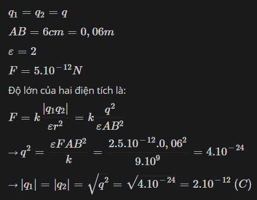 Hai điện tích điểm cùng điện tích là q, đặt tại hai điểm A và B cách nhau một đoạn AB = 6cm. Hằng số điện môi của môi trường là