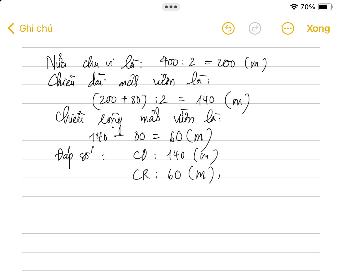 Đáp số : Chiều dài: 140 m