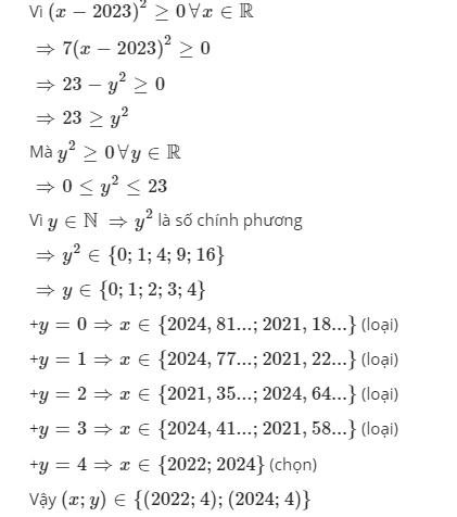 7(x-2023)2=23-y2.Tìm số tự nhiên x,y