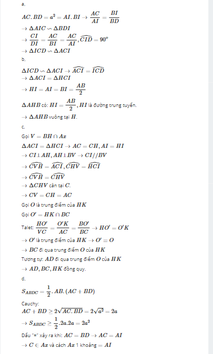 cùng vuông góc với AB. Lấy C thuộc tia Ax, D thuộc tia By sao cho AC BD a . 2