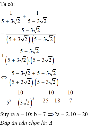 Sau khi rút gọn biểu thức ta được phân số tối giản , (a, b ). Khi đó 2a có giá trị là: