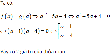 Cho hai hàm số f(x) = và g(x) = 5x - 4 . Có bao nhiêu giá trị của a để f(a) = g(a)