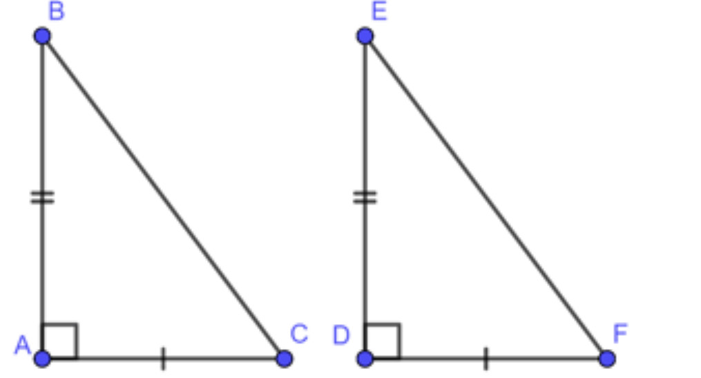 Nếu hai cạnh góc vuông của tam giác vuông này lần lượt bằng hai cạnh góc vuông của tam giác vuông kia thì hai tam giác vuông đó bằng nhau (cạnh – góc – cạnh )