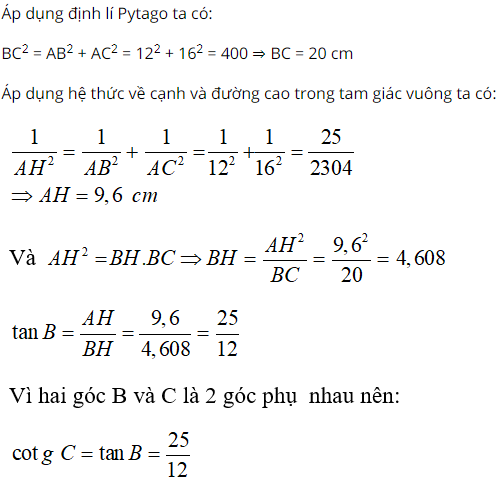 Cho tam giác ABC vuông tại A có đường cao AH và AB = 12 cm; AC = 16 cm.