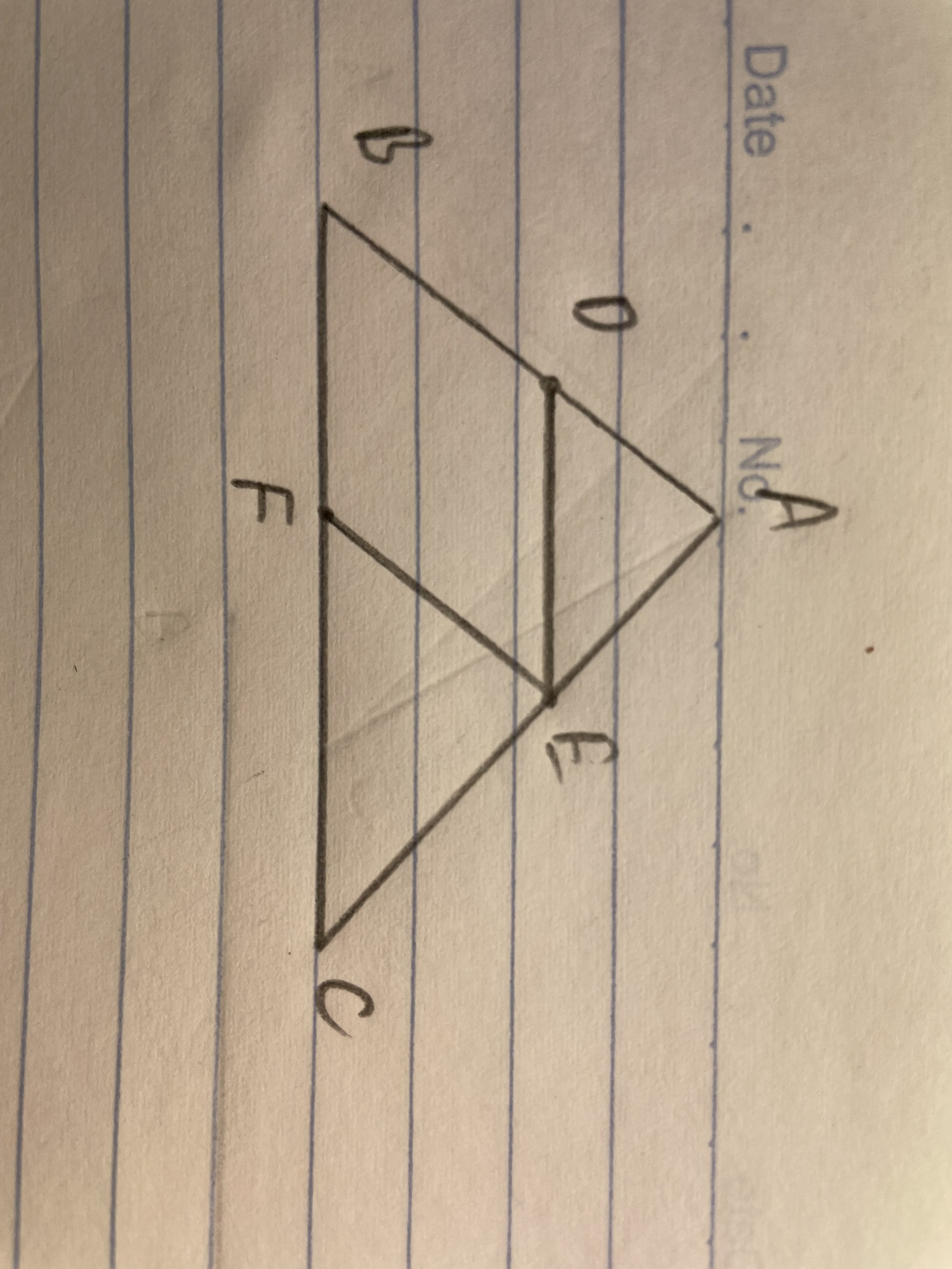 Qua điểm D thuộc cạnh AB của tam giác ABC, vẽ đường thẳng song song với BC, cắt AC ở E. Qua E vẽ đường thẳng song song với AB, cắt BC ở F