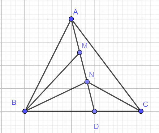 5/ Cho tam giác ABC, trên BC lấy điểm D sao cho CD= 2/5BC. Nối AD, trênAD lấy 2 điểm M va N sao cho AM = MN = ND. Nối BM, CM, BN, CN.