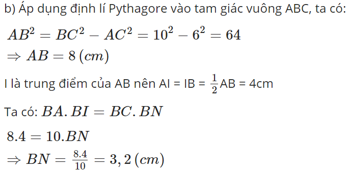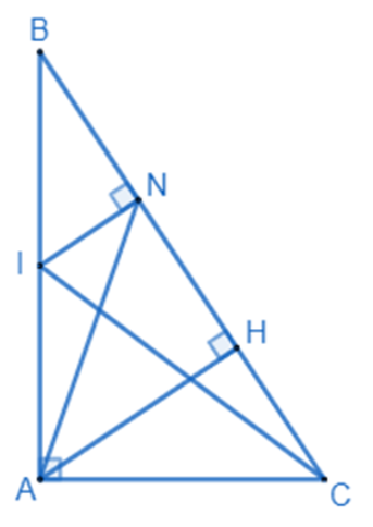 Cho tam giác ABC vuông tại A (AB>AC). Gọi I là trung điểm của AB. Kẻ IN vuông góc với BC tại N (N thuộc BC)