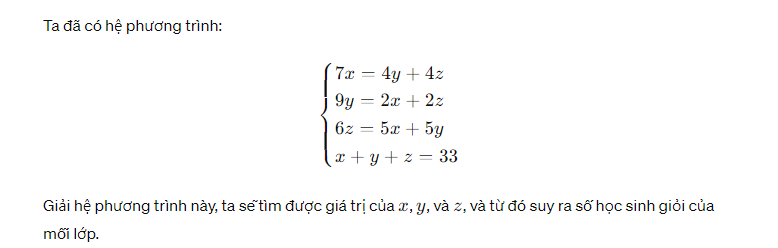 Ba lớp 7A 7B 7C có số học sinh giỏi tỉ lệ với 4;2;5 tính số học sinh giỏi của mỗi lớp biết rằng tổng số học sinh giỏi của ba lớp là 33 em