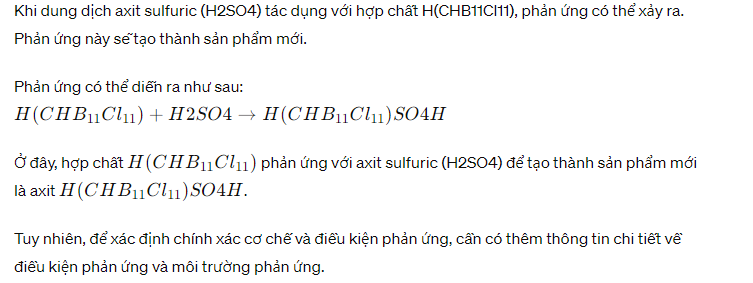 khi dd H2SO4 tác dụng với H(CHB11Cl11) sẽ có phản ứng ko? Nếu có thì phản ứng đó là gì?