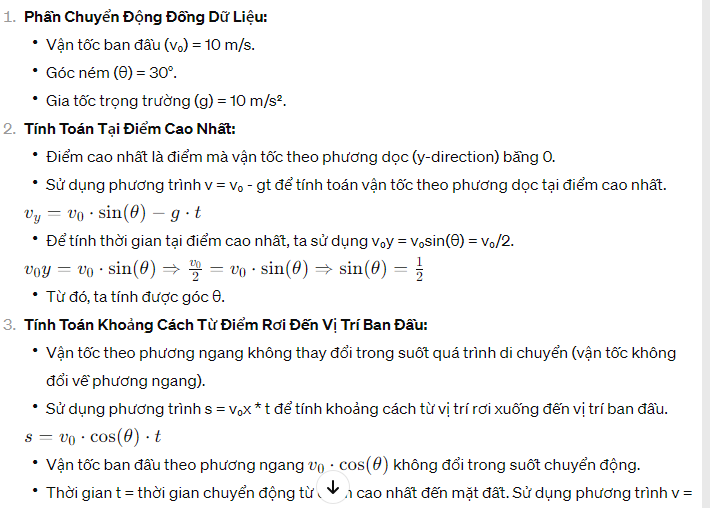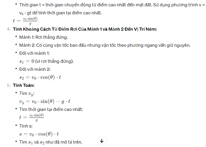 Một lựu đạn dc ném từ mặt đất với vận tốc v0=10m/s theo phương làm với phương ngang một góc 30 độ. Lên tới điểm cao nhất thì nó nổ thành hai mảnh có khối lượng bằng nhau, khối lượng của thuốc nổ k đáng kể. Mảnh 1 rơi thẳng đứng với vận tốc ban đầu của mảnh 2. Tính kc từ các điểm rơi trên mặt đất của hai mảnh đến vị trí ném lựu đạn. Lấy g=10m/s^2
