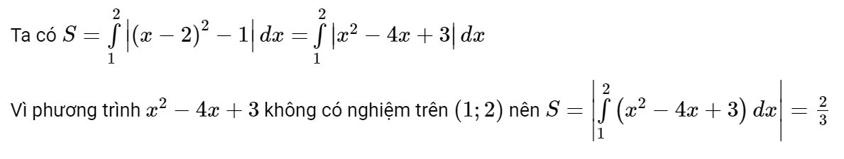 Diện tích giới hạn bởi đồ thị và trục hoành sẽ bằng diện tích dưới đường cong trừ đi diện tích trên trục hoành.