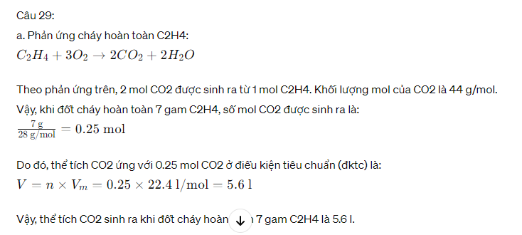 Câu 29 (1.5đ) Đốt cháy hoàn toàn 7 gam khí Etilen (C2H4) thu được khí A và nước.