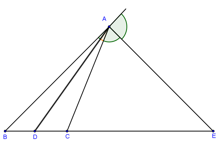Đường phân giác ngoài tại một đỉnh của tam giác chia cạnh đối diện thành hai đoạn thẳng tỉ lệ với hai cạnh kề với hai đoạn thẳng ấy.
