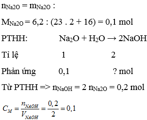 Hòa tan 6,2 g vào nước được 2 lít dung dịch. Nồng độ mol của dung dịch thu được là: