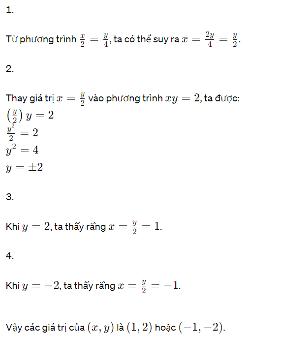 1. Từ phương trình x/2 = y/4, ta có thể suy ra x = 2y.