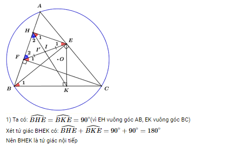1) Chứng minh BHEK là tứ giác nội tiếp và HKE = AEH.