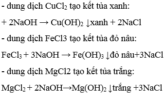 Để nhận biết 3 lọ mất nhãn đựng 3 dung dịch CuC, FeC, MgC ta dùng dung dịch KOH vì tạo các kết tủa có màu khác nhau: