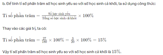 b)tỉ số % của hs vs hs cả khối là: 27/180x100%=15%