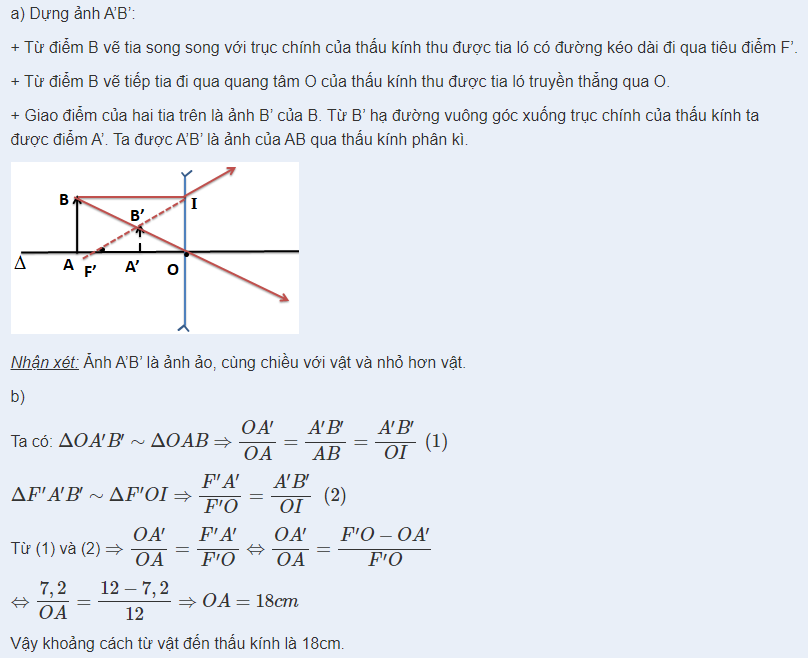 a) Vẽ ảnh A'B' và nêu tính chất ảnh