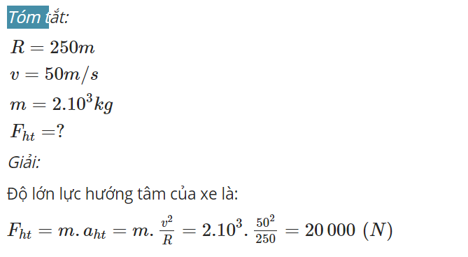 Câu 6 một xe đua chạy quanh một đường tròn nằm ngang. Bán kính 250m. Vận tốc xe không đổi có độ lớn là 5 m/s. Khối lượng xe là 2.10 mũ3 kg. Độ lớn của lực hướng tâm của chiếc xe là?