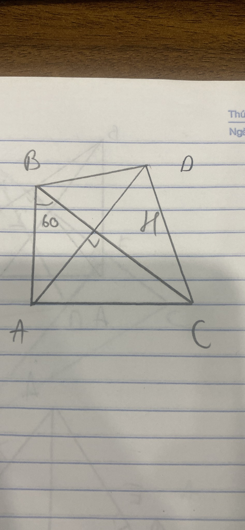 b) Với \( \angle ABC = 60^\circ \), ta có \( \angle AHD = 90^\circ \) (do \( AH \) vuông góc với \( BC \)), vì vậy \( \angle DHA = 180^\circ - 90^\circ - 60^\circ = 30^\circ \).