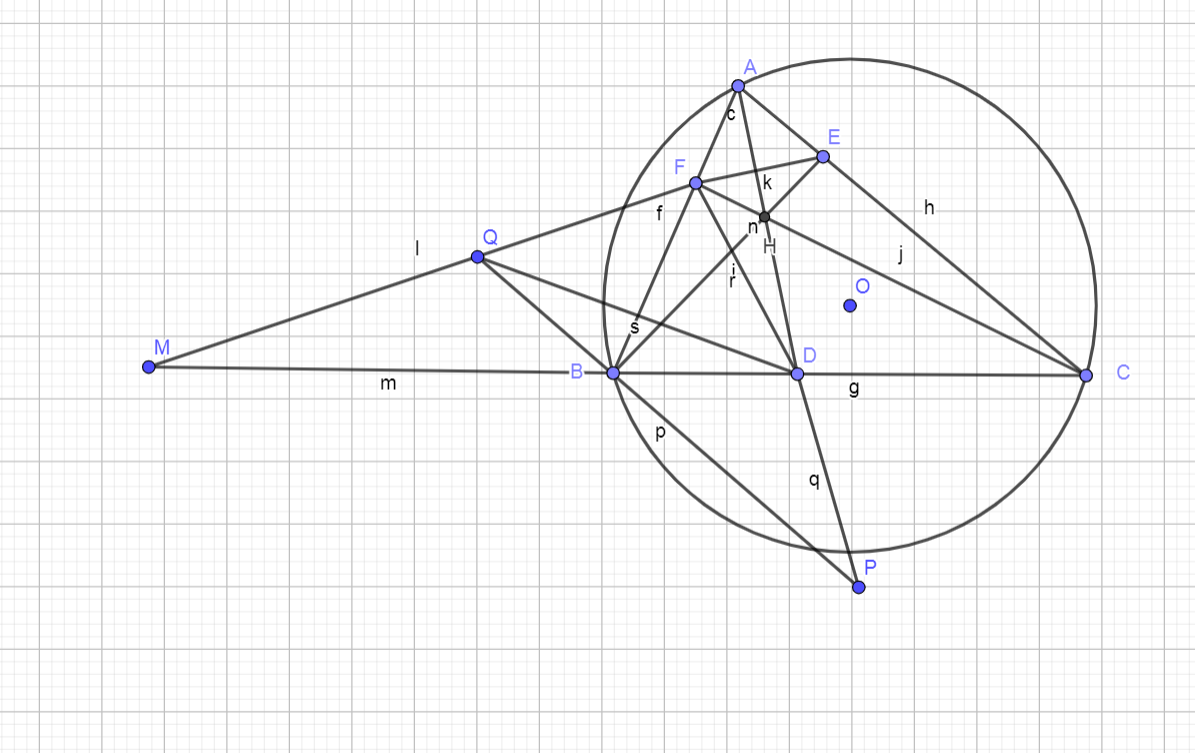 Để chứng minh \(MF \cdot ME = MB \cdot MC\), ta sẽ sử dụng tính chất của đường tròn và các đoạn thẳng cắt nhau.