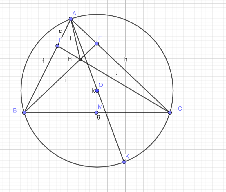 - Đường kính \(AF\) của đường tròn sẽ vuông góc với đường thẳng \(BC\) tại điểm \(M\), vì \(M\) là trung điểm của \(BC\).