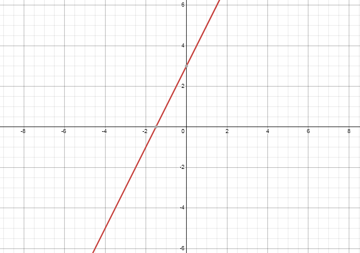 Đồ thị hàm số này là một đường thẳng có hệ số góc \( 2 \) và cắt trục tung tại điểm \( (0, 3) \).