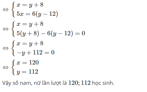 Gọi số học sinh nam là x và số học sinh nữ là y.