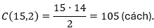 Tổng số cách chọn 2 viên bi từ 15 viên là: