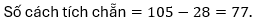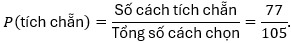 Tích của hai số là **chẵn** nếu ít nhất **một số là chẵn**. Sử dụng phương pháp bổ sung, ta tính số trường hợp để tích là **lẻ**, sau đó lấy tổng trừ đi.