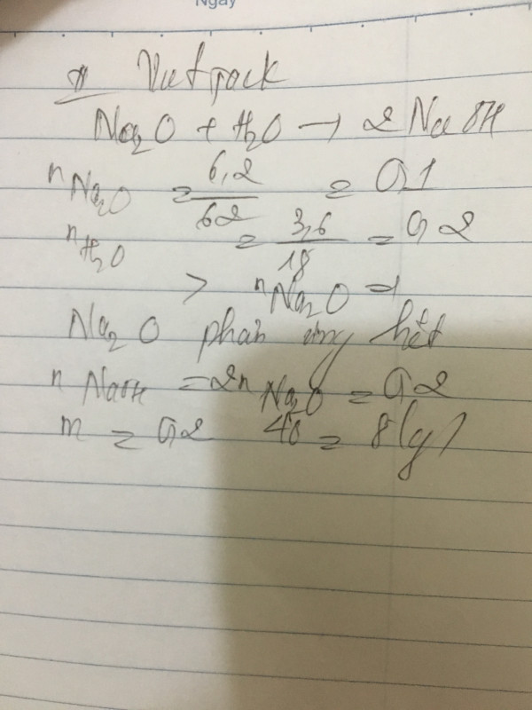 Hoà tan 6,2 gam Na2O ( Natri oxit ) vào 3,6 gam H2O ( Nước ). Tính khối lượng bazơ thu được ?