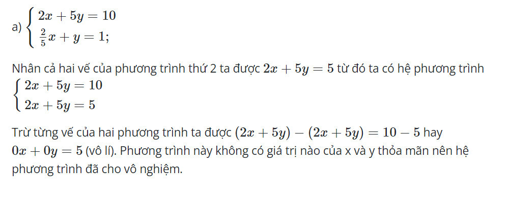 Lúc này phương trình trở thành vô nghiệm, bởi vậy hệ phương trình ban đầu không có nghiệm.