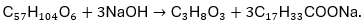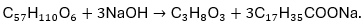 - 1 mol tristearin tạo ra 3 mol sodium stearate (C17H35COONa ).